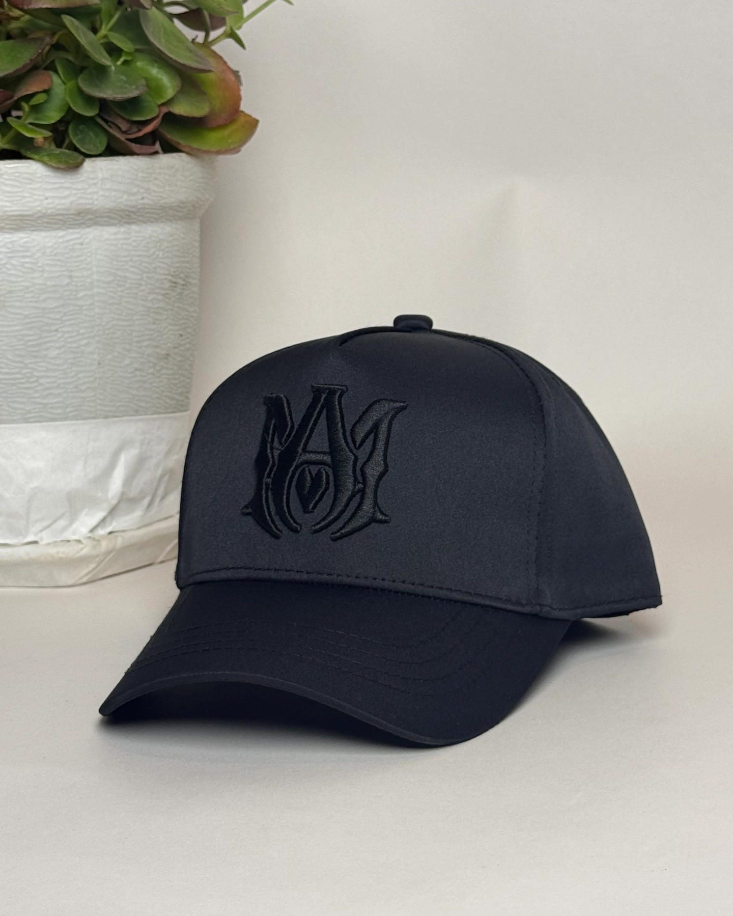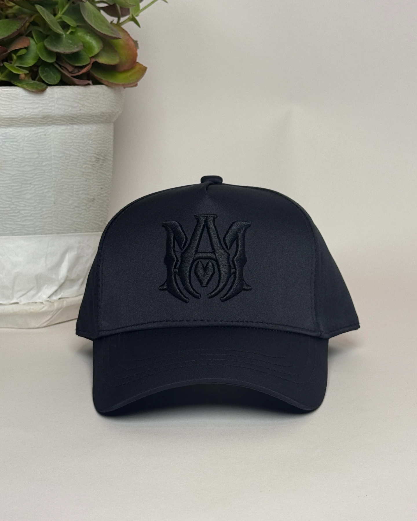Amiri MA Canvas Hat, a black cotton trucker-style baseball cap