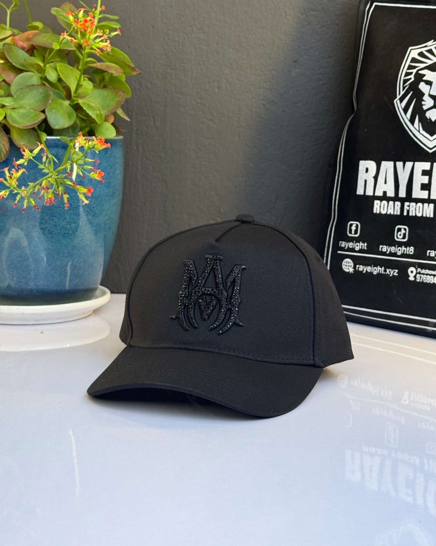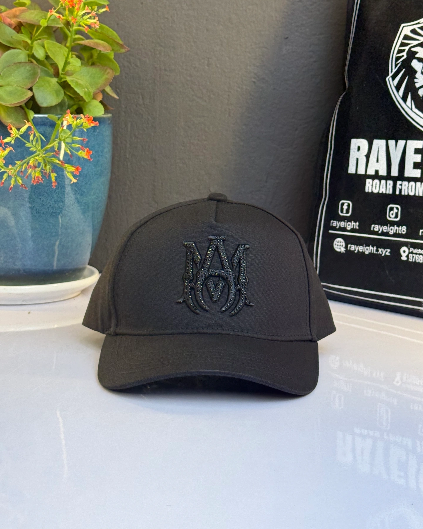 Amiri MA Crystal Canvas cap in black.