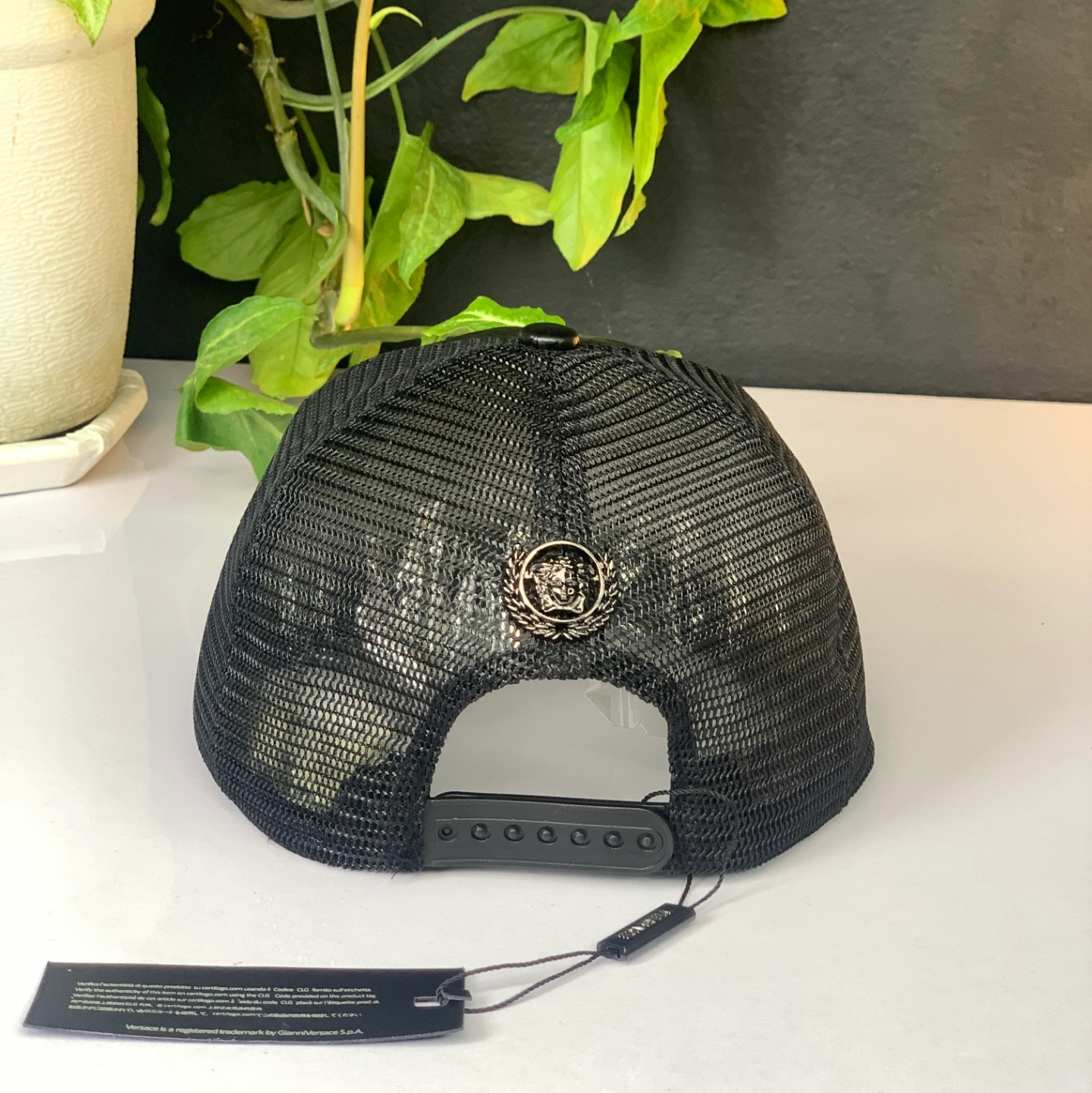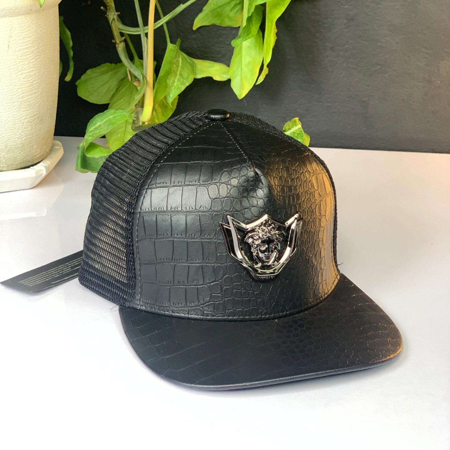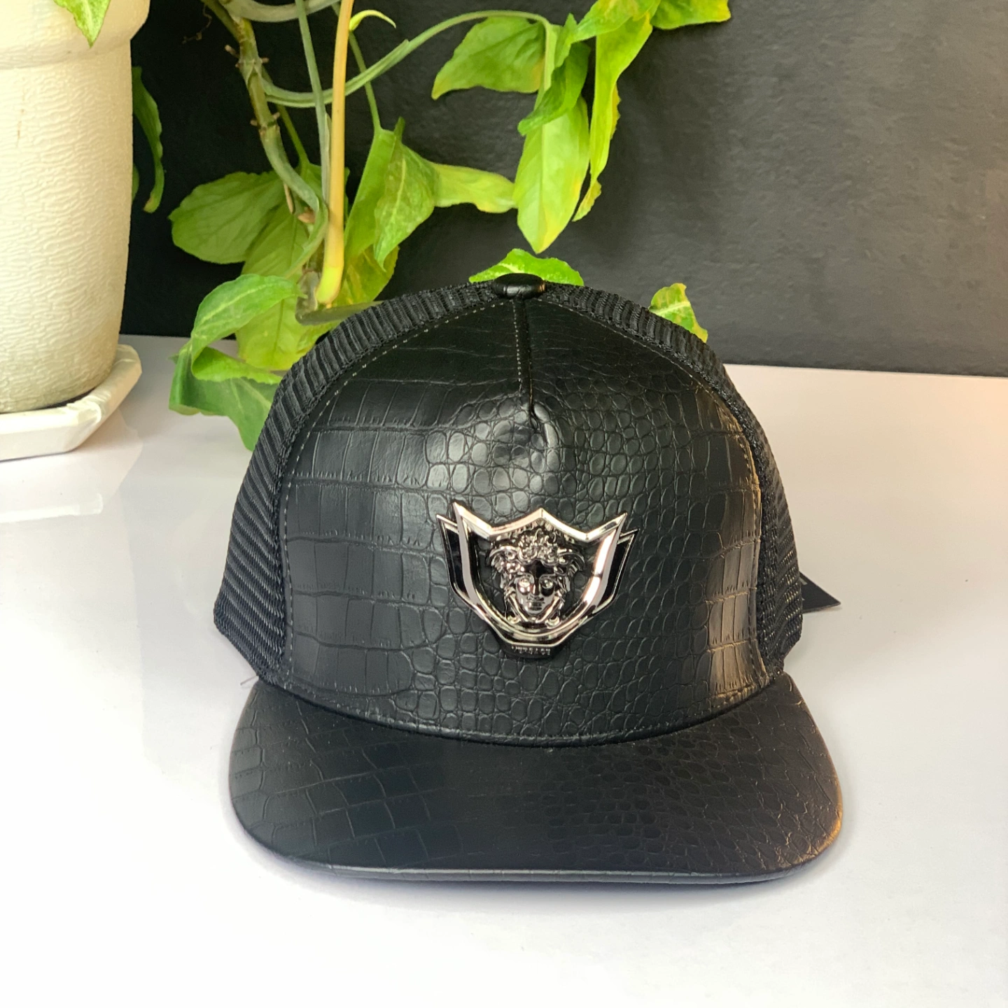 Black Trucker Cap with Versace-style appering Medusa emblem