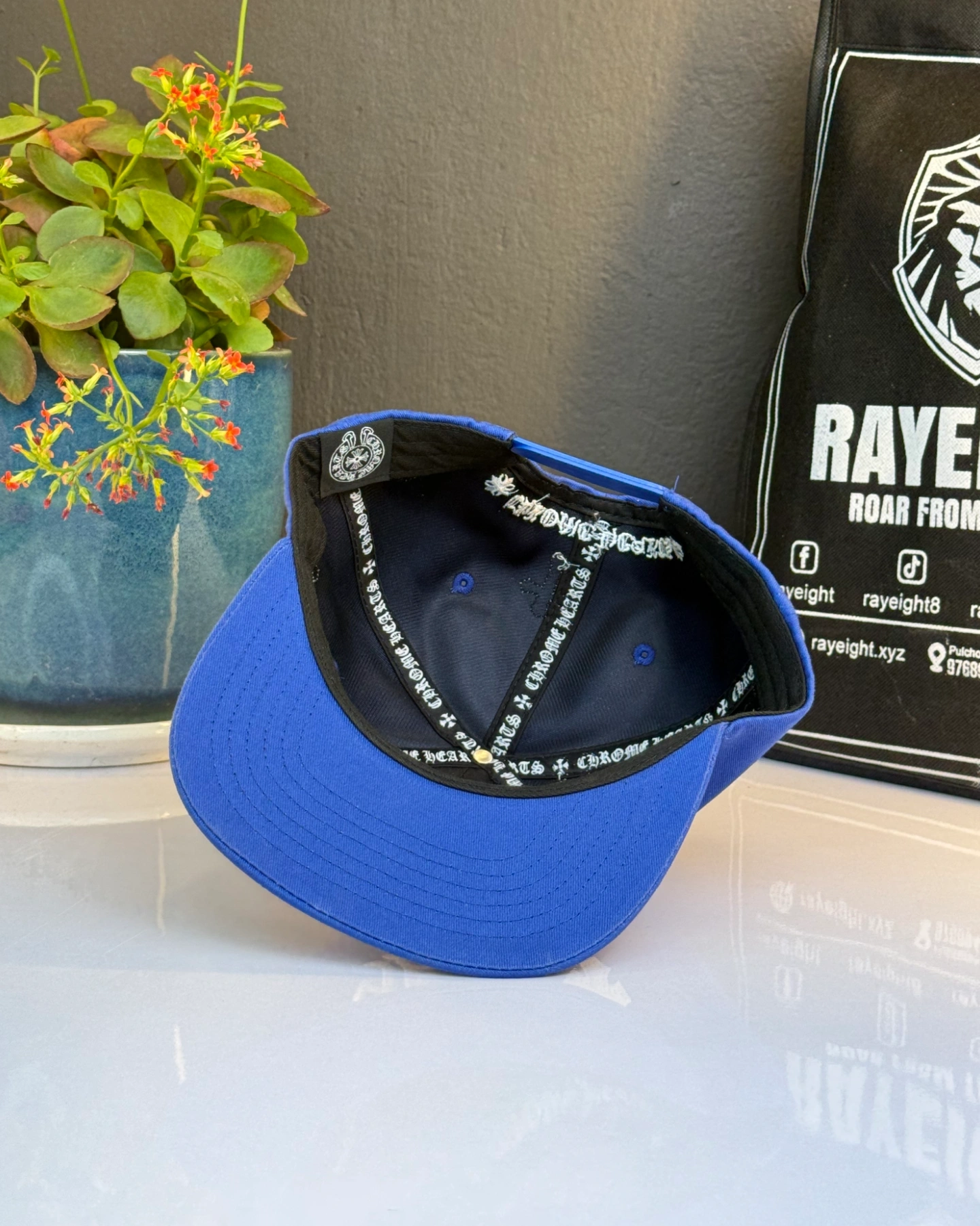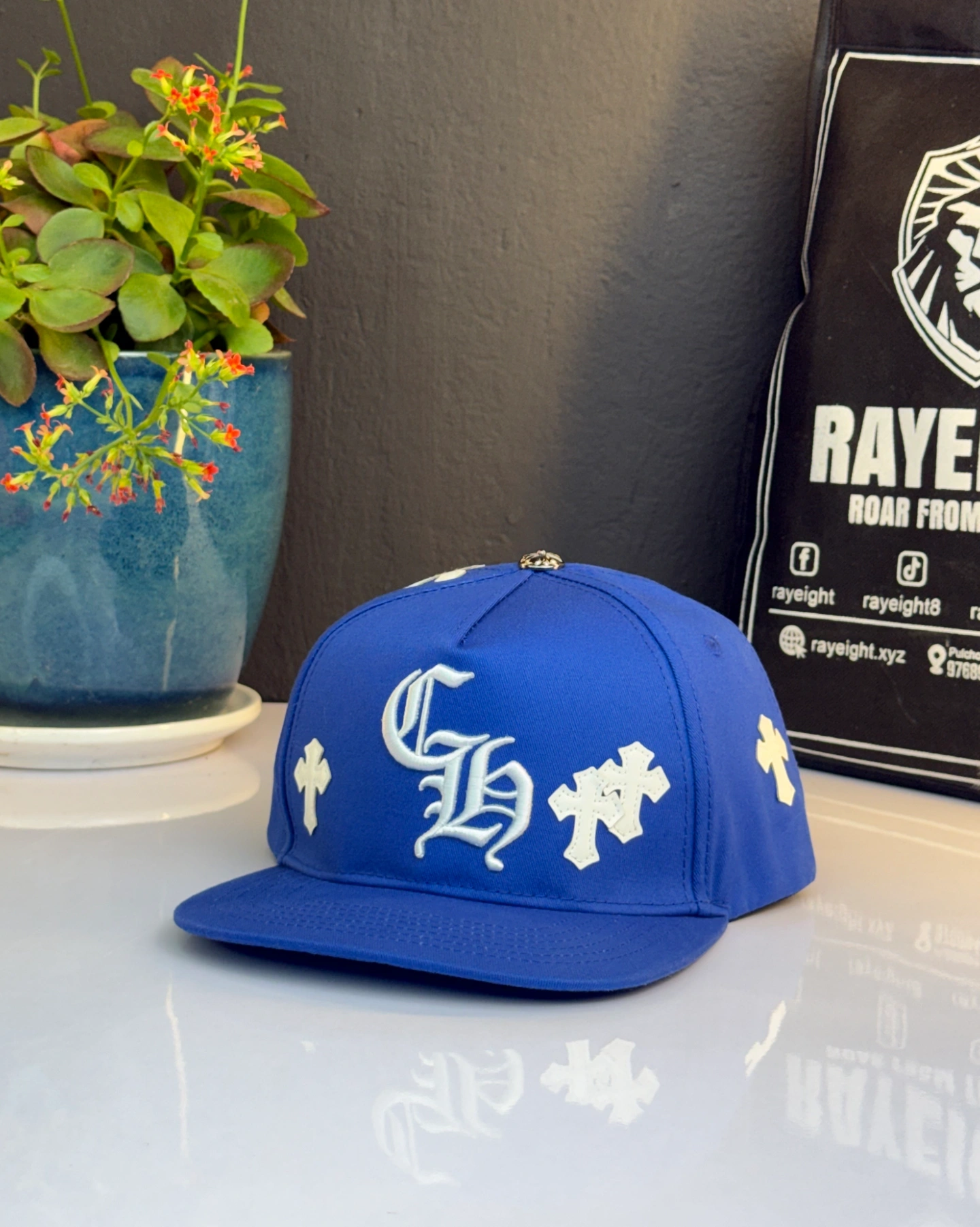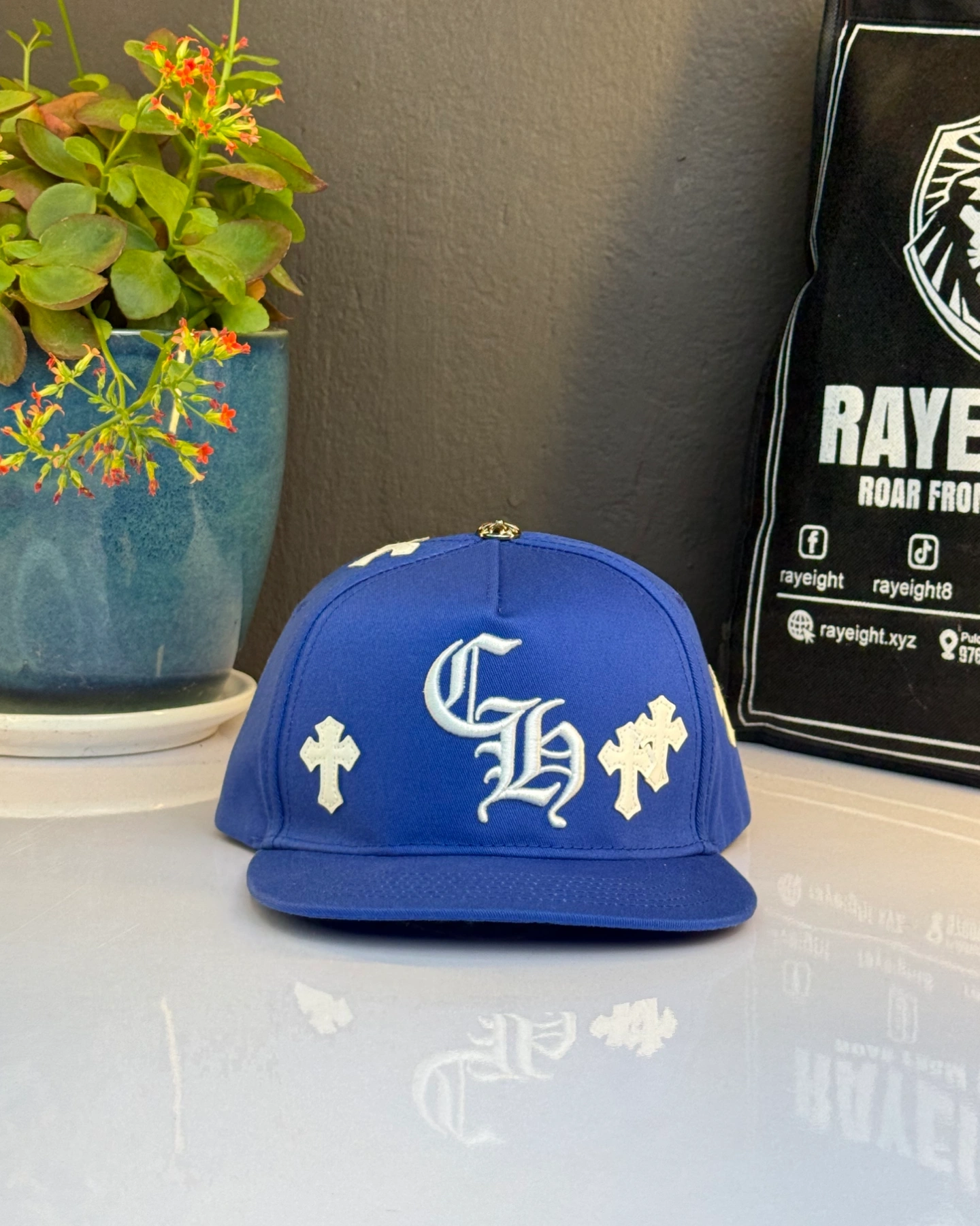 Blue Chrome Hearts Cross Patch Baseball Snapback cap.