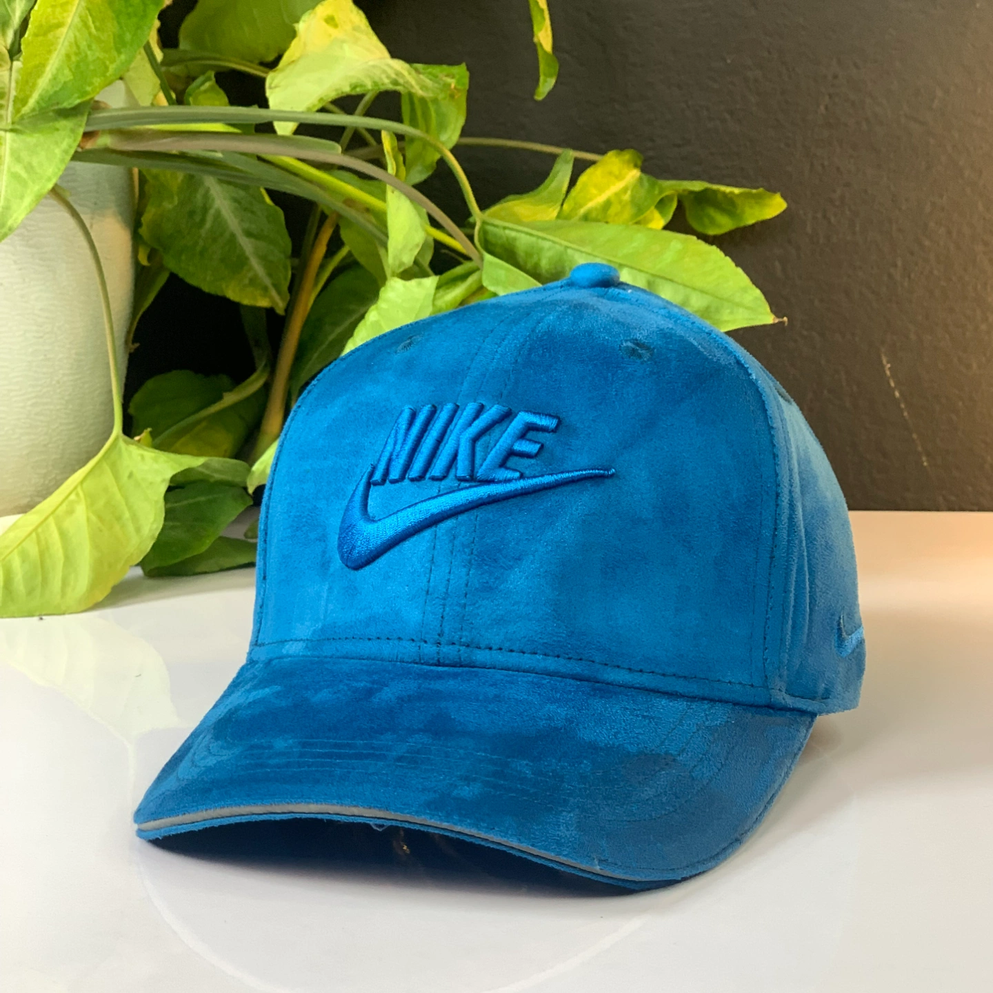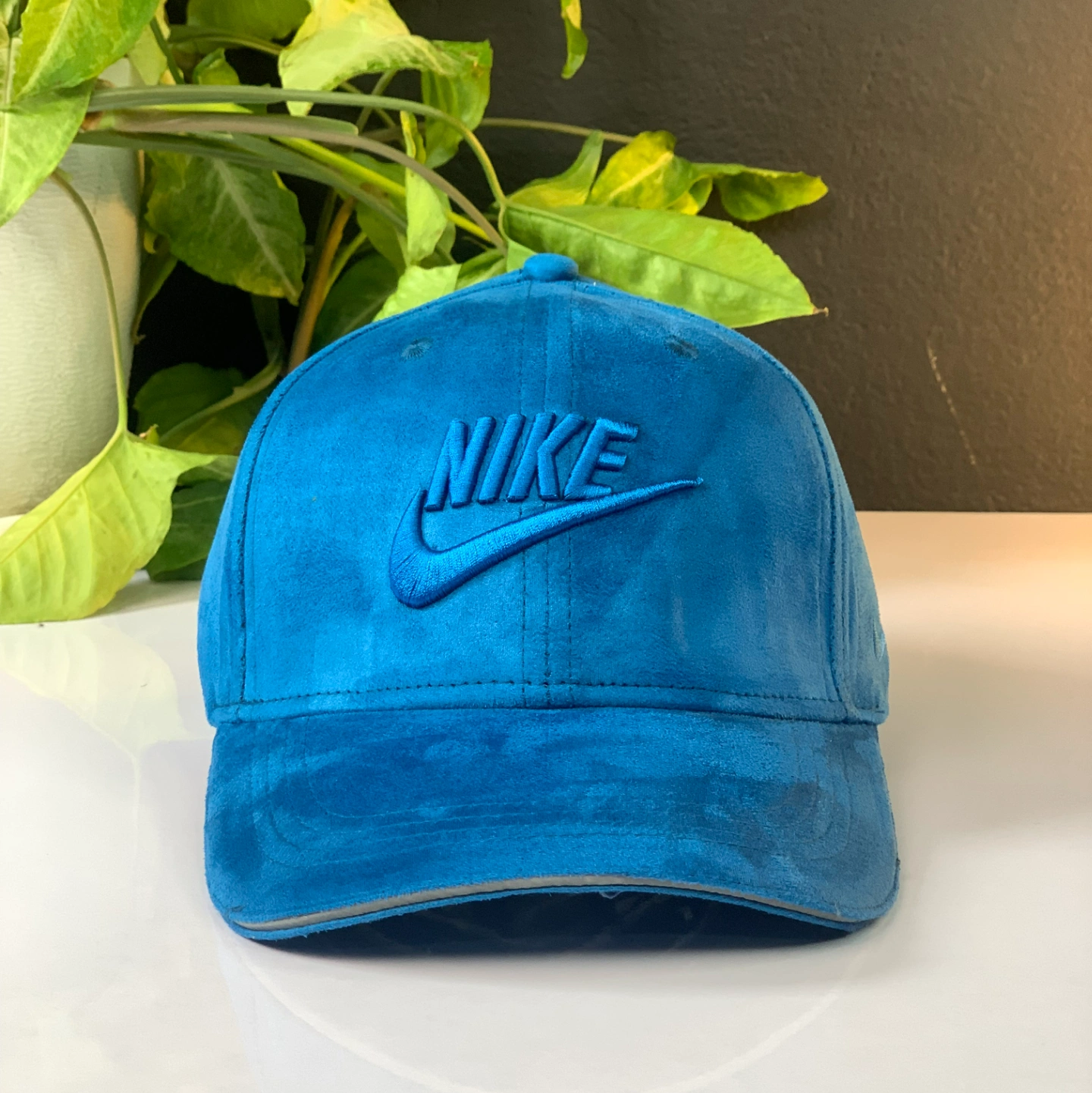 Blue Nike Heritage 86 cap in a suede-like material with an embroidered logo.