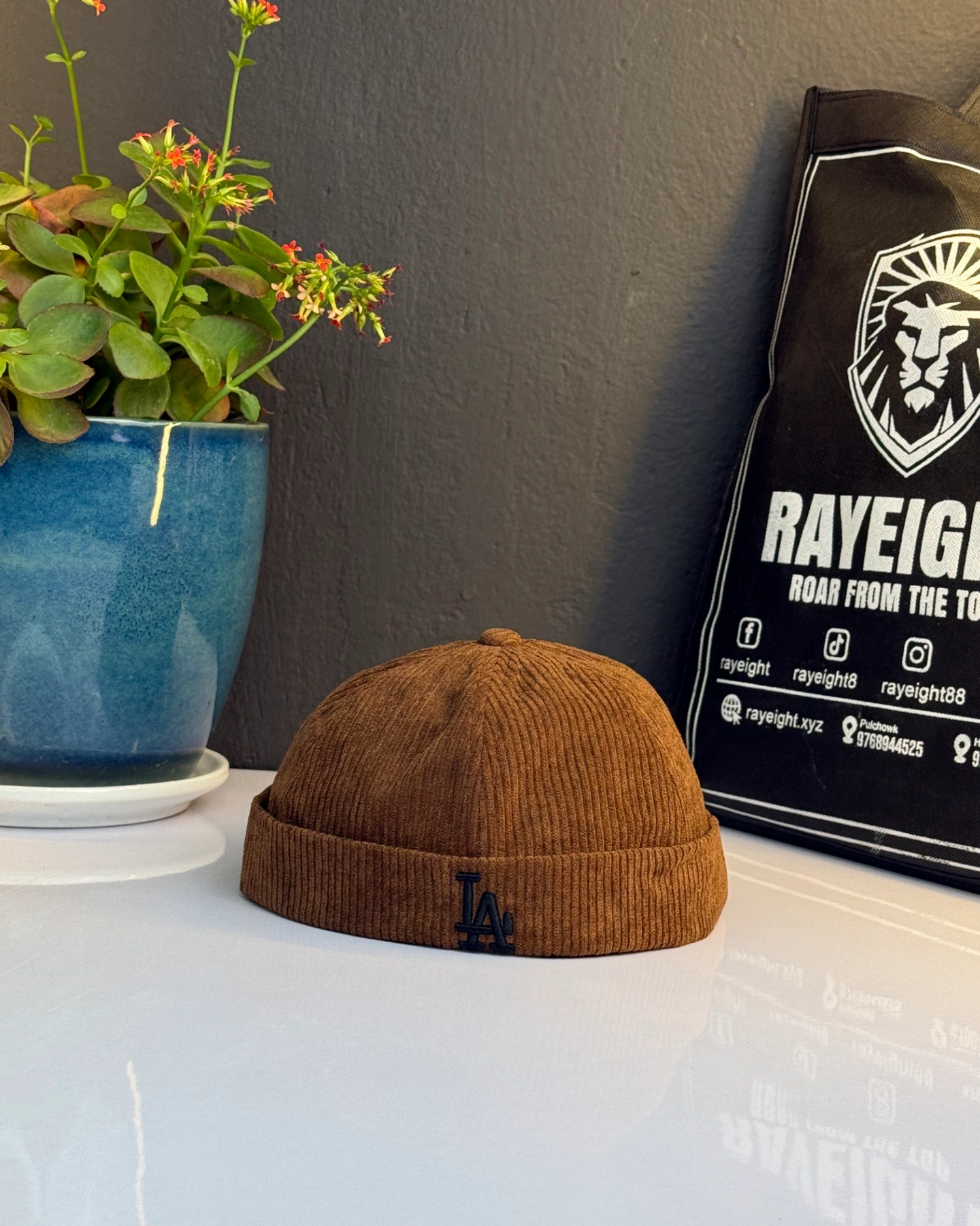 Brown brimless docker hat features an embroidered Los Angeles Dodgers "LA" logo.