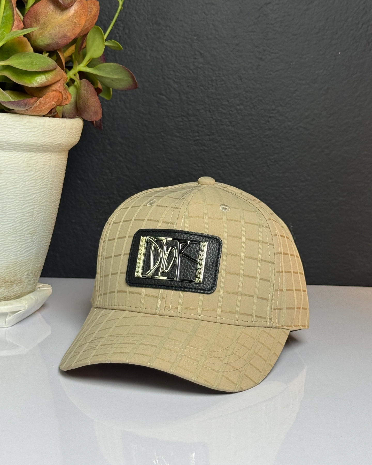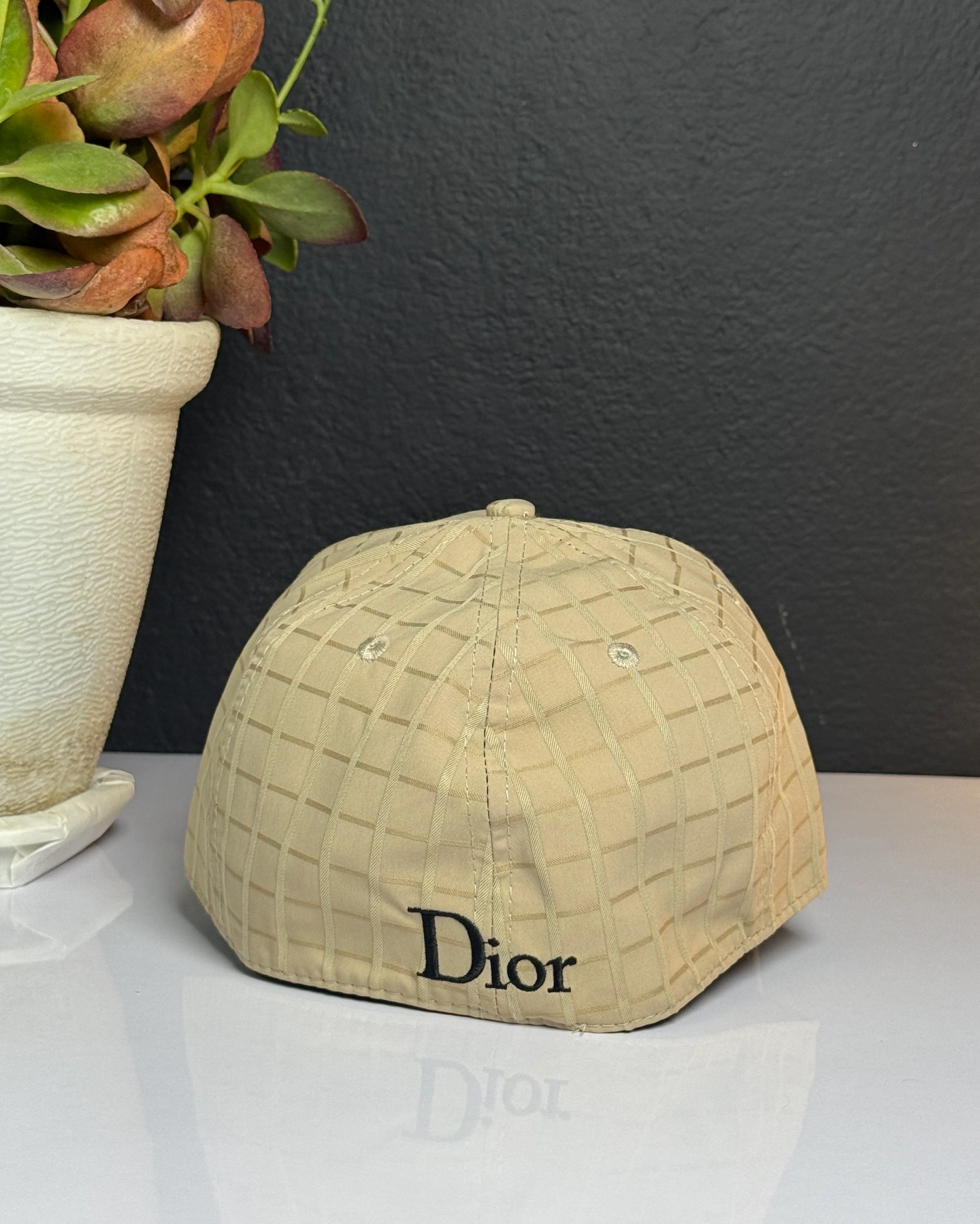 Christian Dior baseball cap featuring a distinctive grid pattern and a branded logo patch on the front panel.