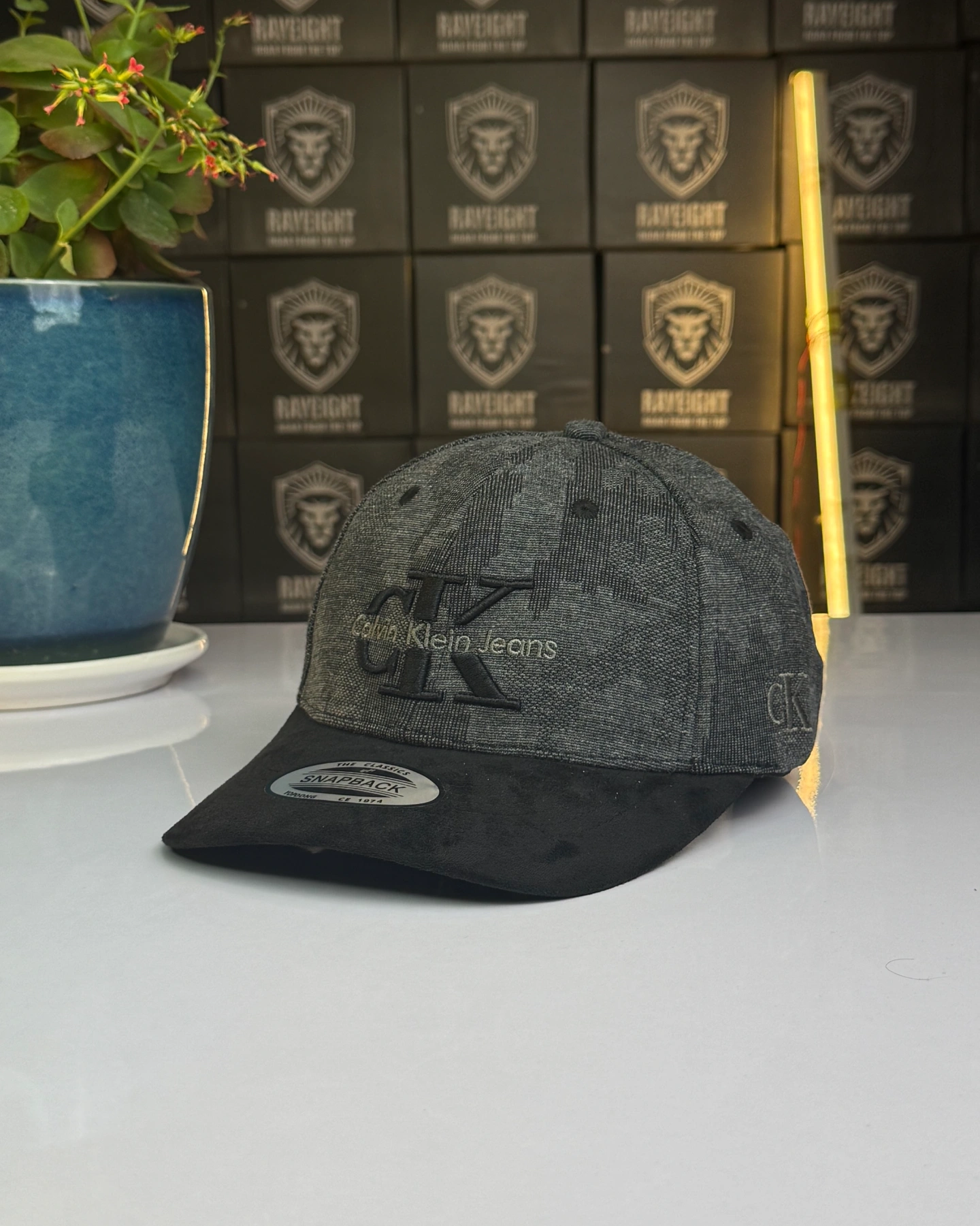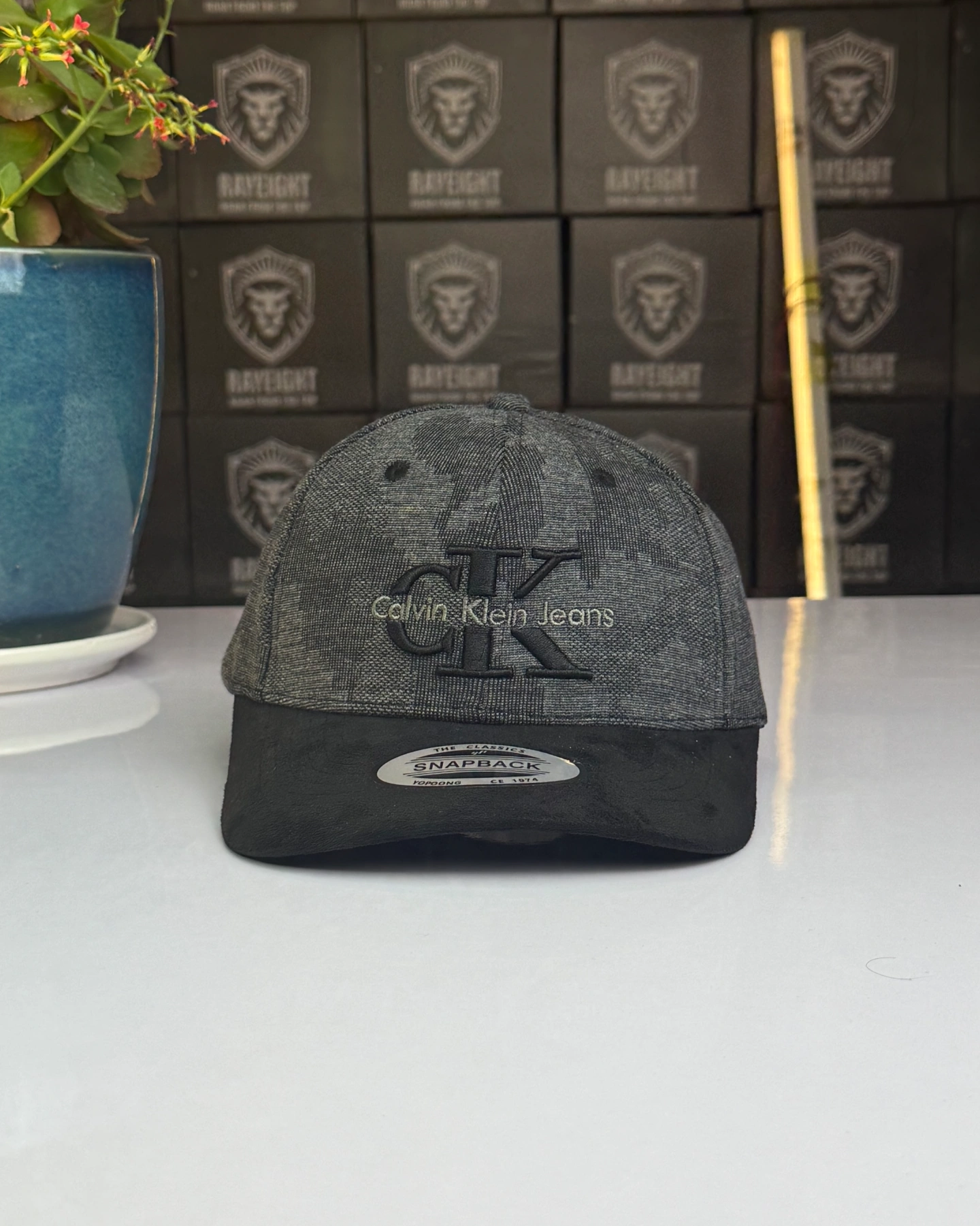 Grey and black Calvin Klein Jeans snapback cap.