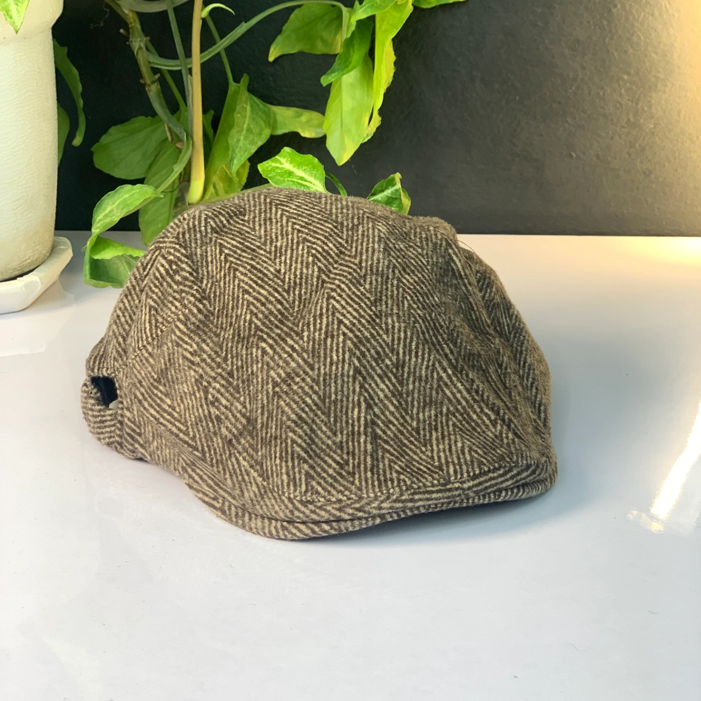 herringbone tweed flat Baker Boy Hat