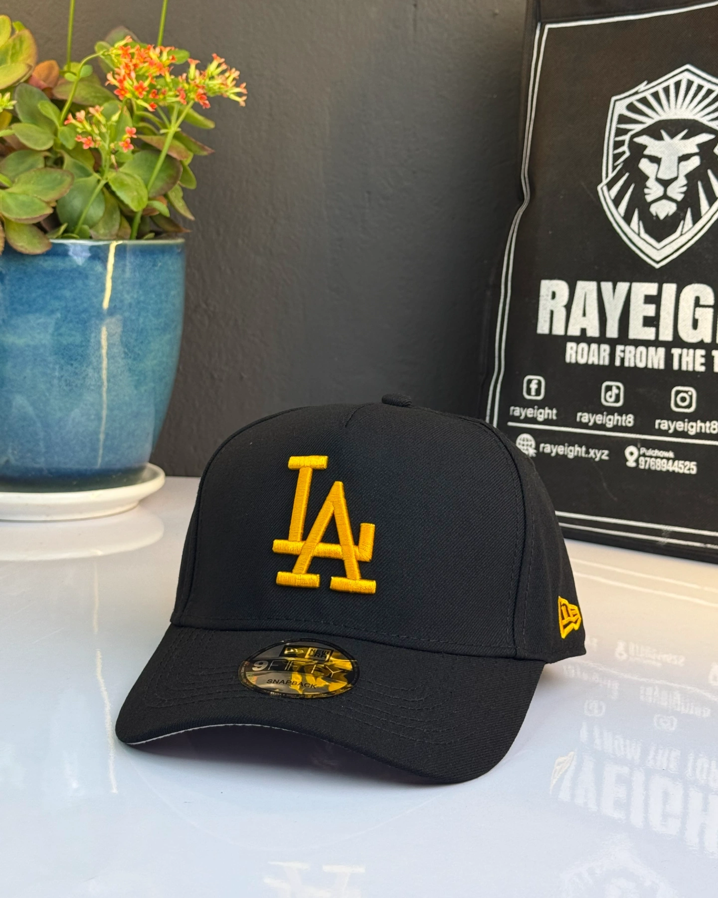 Los Angeles Dodgers League Essential 9FORTY or 940 A-Frame cap in black and gold.