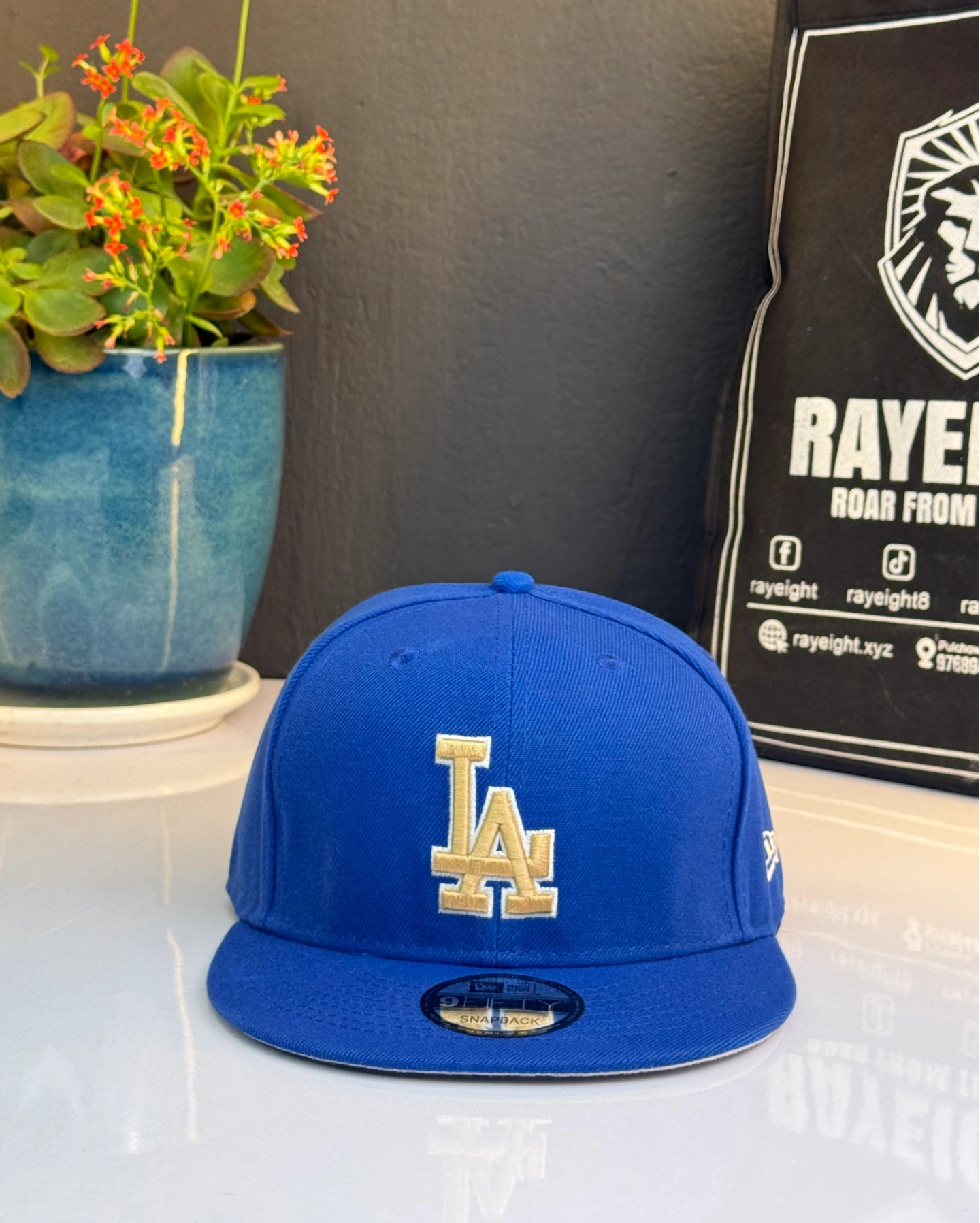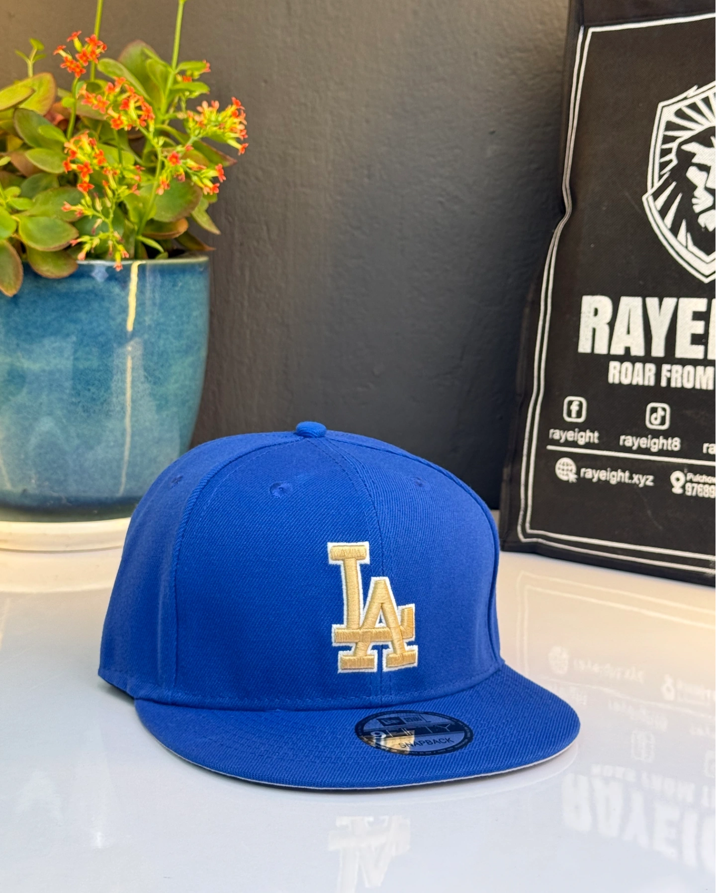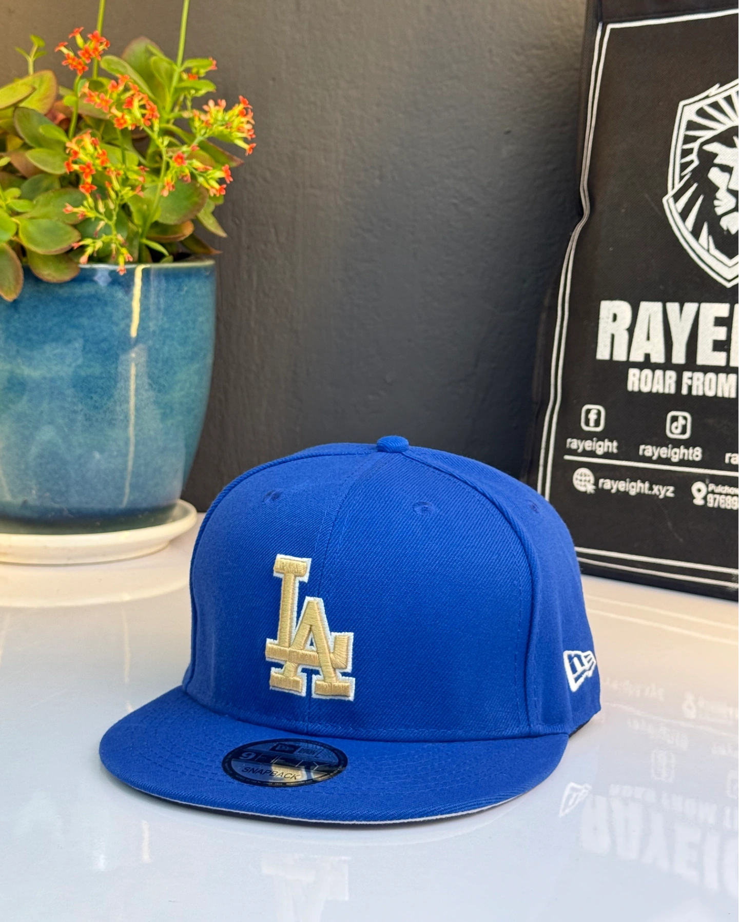 Los Angeles Dodgers MLB fitted hat, likely part of a gold championship collection.