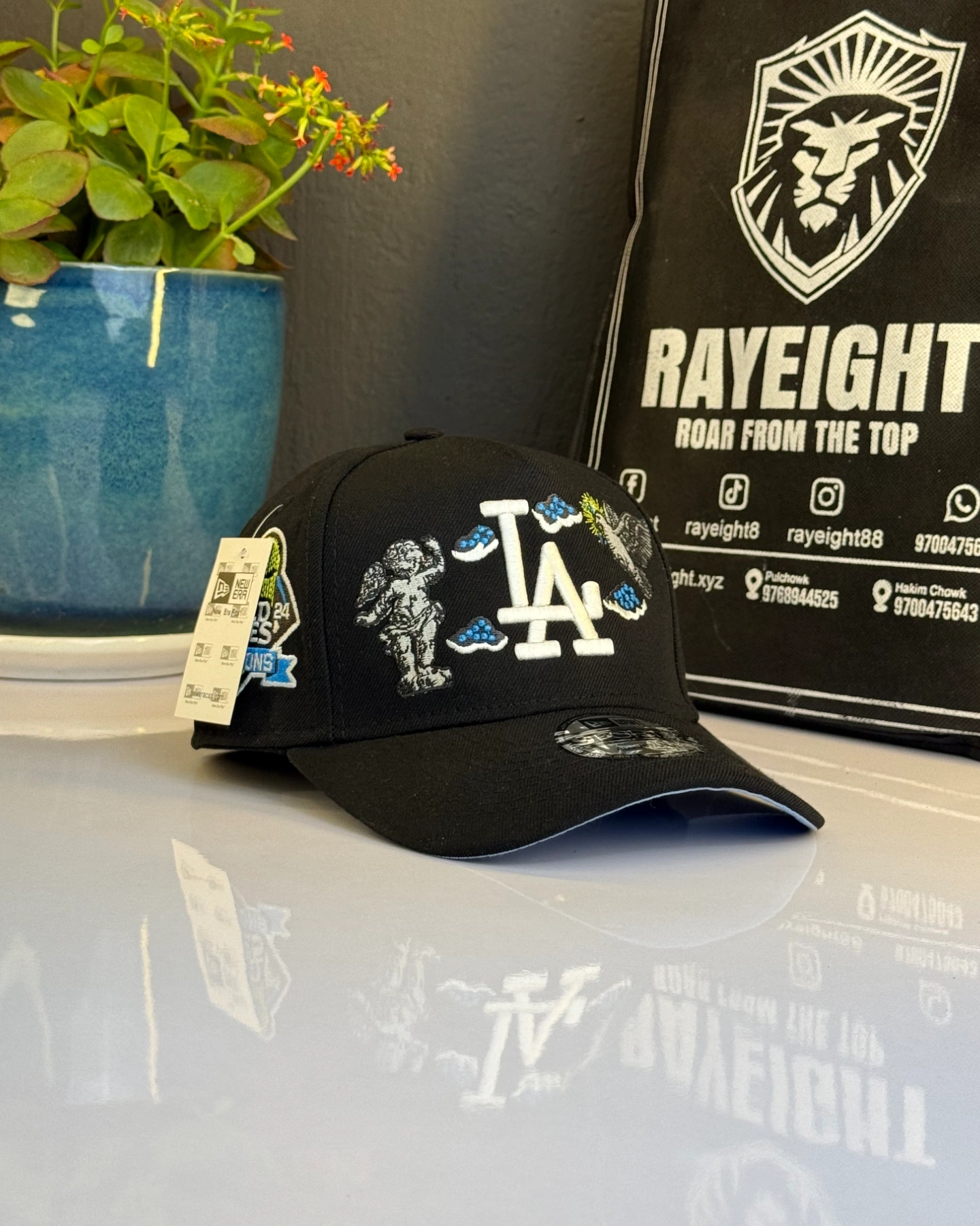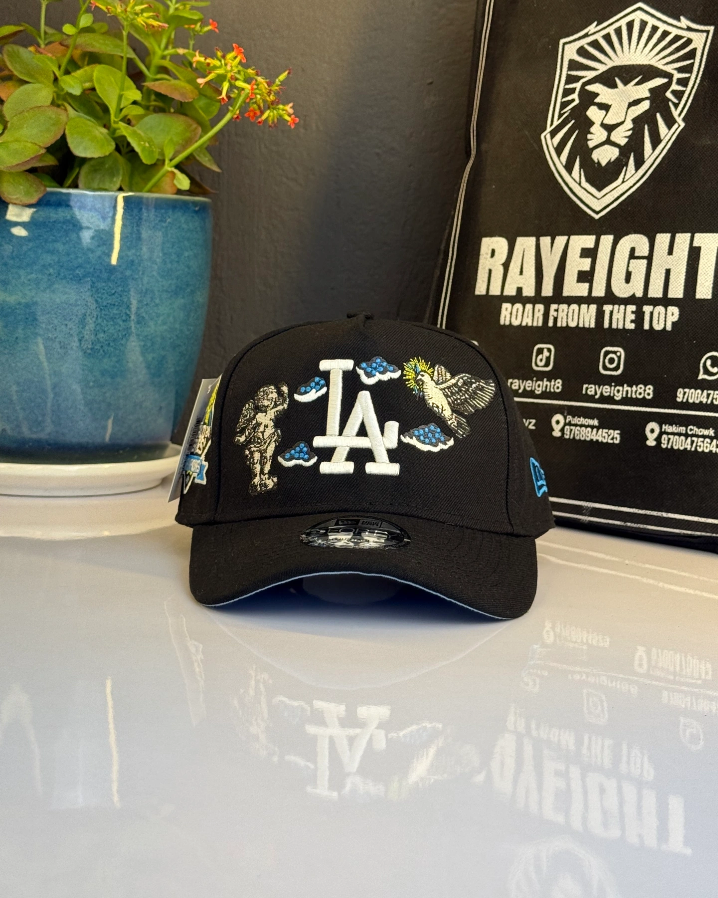 Los Angeles Dodgers snapback cap features an embroidered "Heavenly City" design with cloud accents.