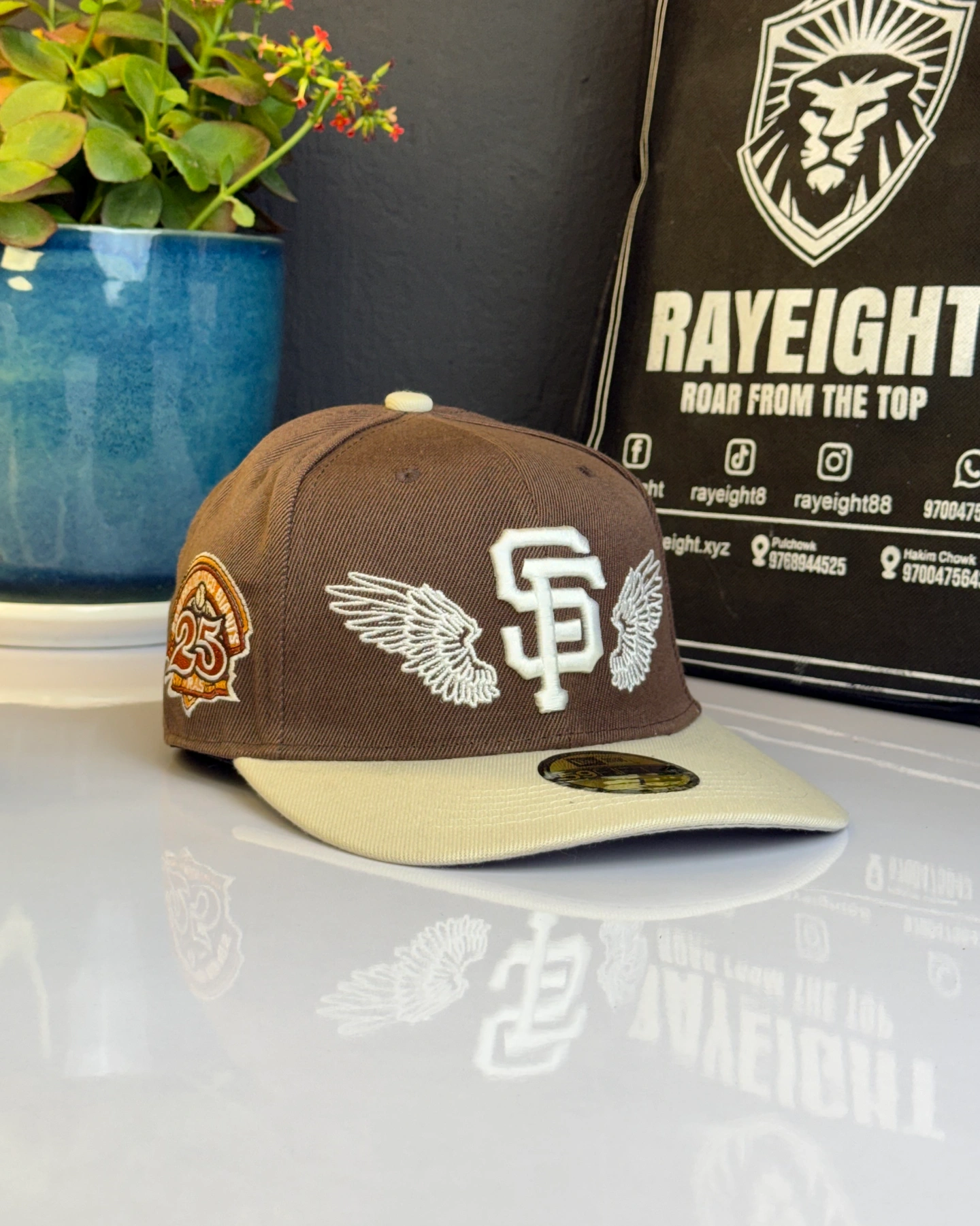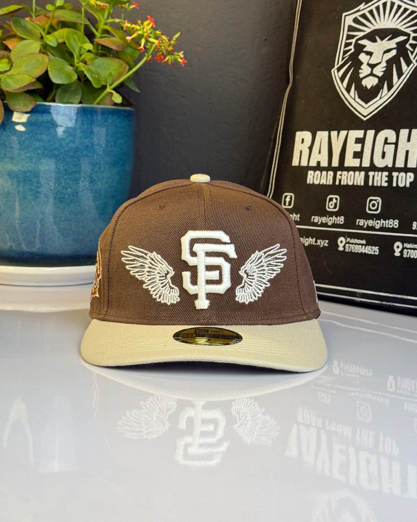 New Era 59FIFTY San Francisco Giants "Team Wings" fcap in a dark brown colorway with a cream visor.
