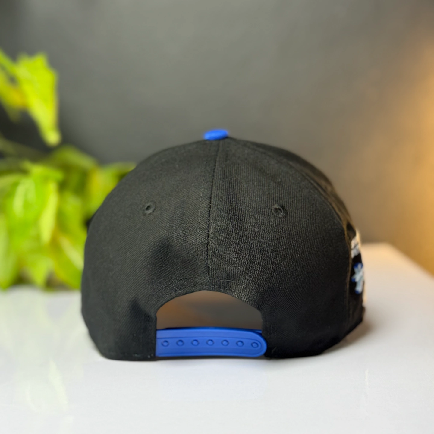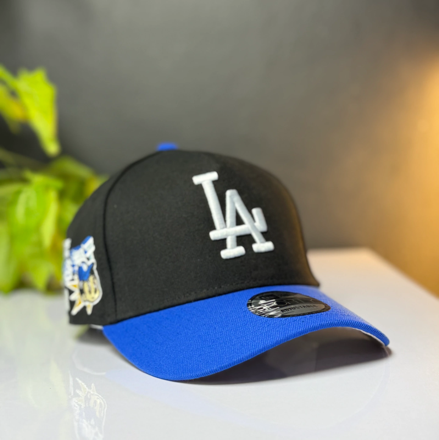 New Era 9FORTY A-Frame Los Angeles Dodgers snapback hat with a black crown, royal blue brim, and a side patch