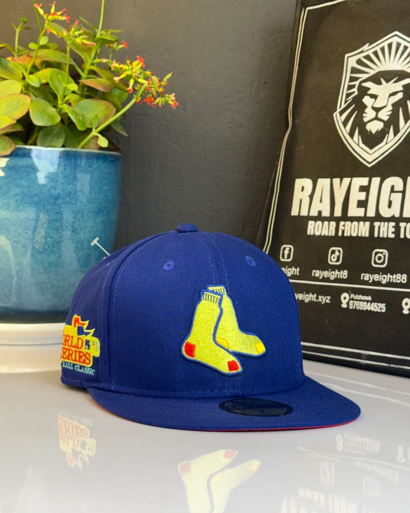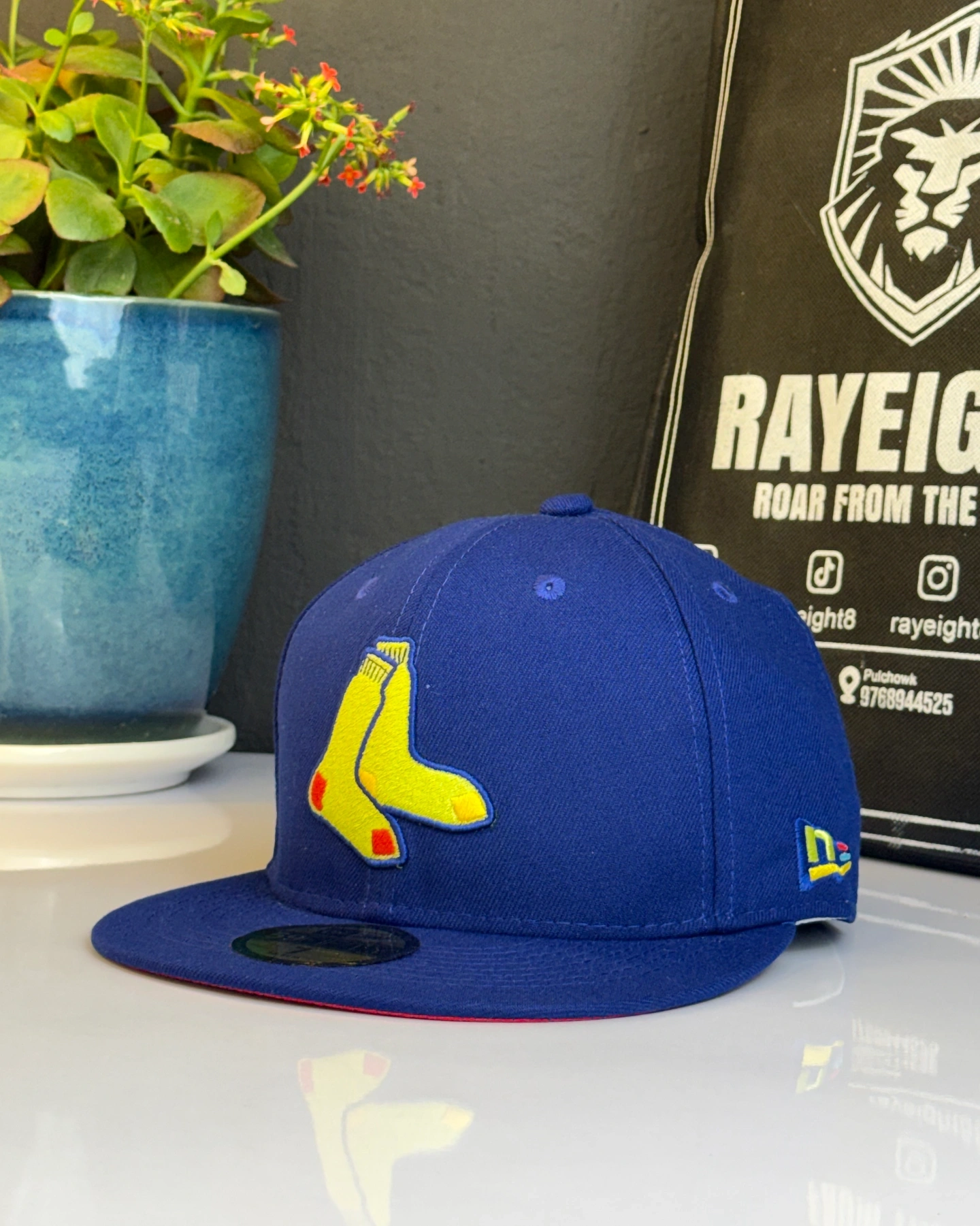 New Era Boston Red Sox 59FIFTY fitted cap featuring an alternate logo with a yellow sock design.