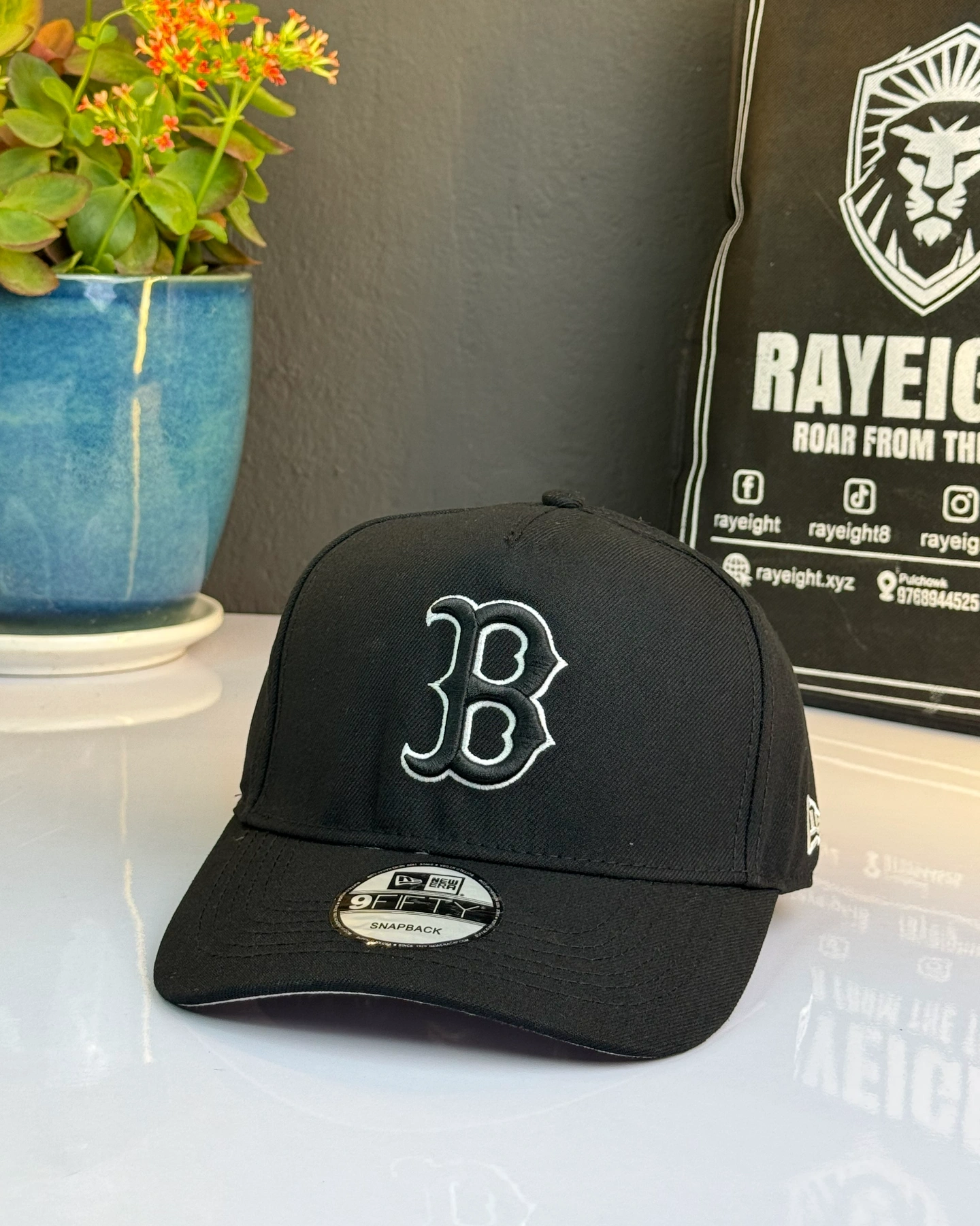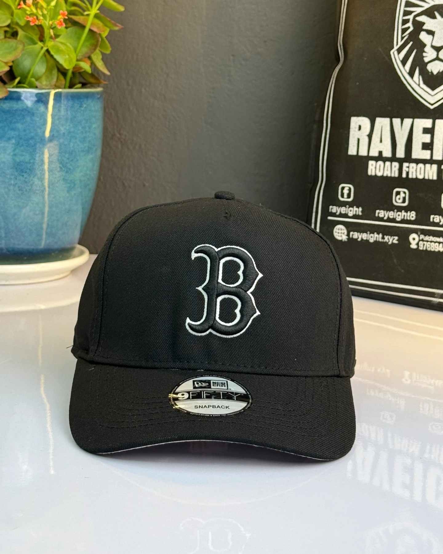 New Era Boston Red Sox 9FORTY A-Frame Snapback cap in black with a white logo.