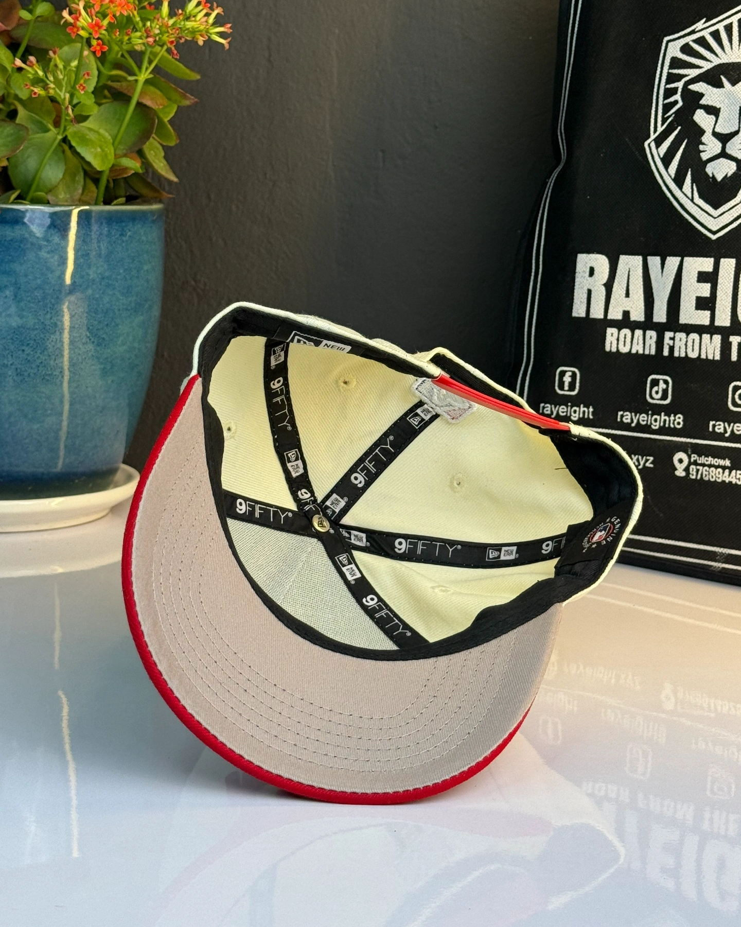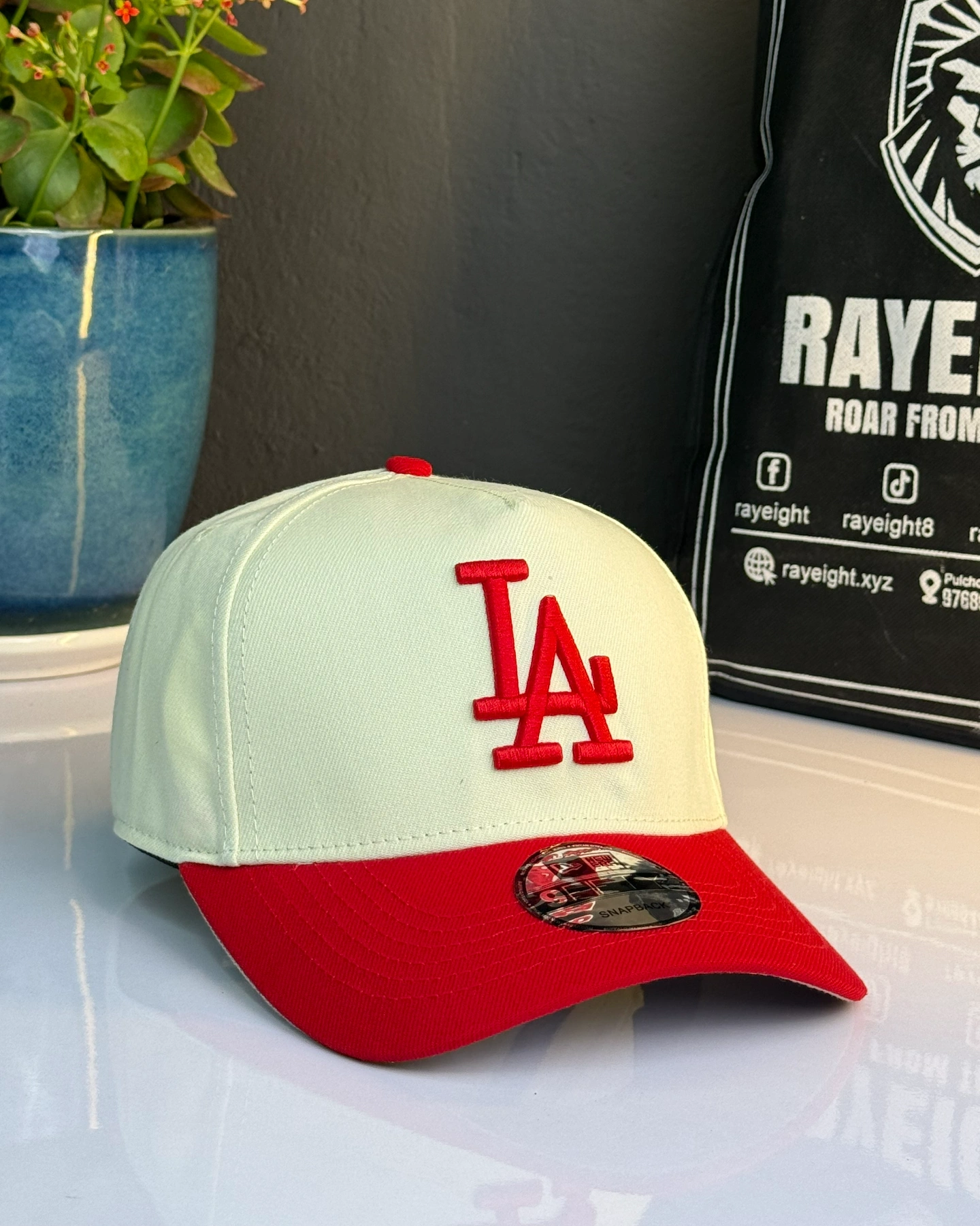 New Era Los Angeles Dodgers MLB 9FORTY A-Frame snapback cap, cream and red colorway.