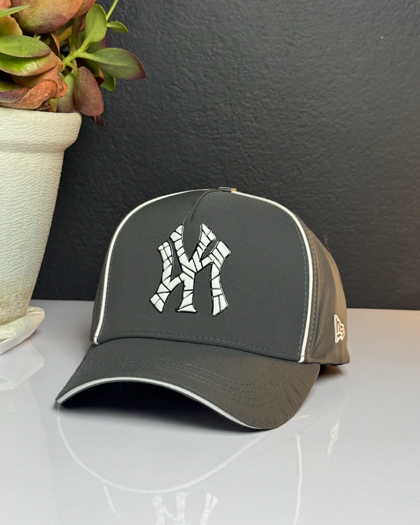 New Era New York Yankees MLB 9FORTY Rope A-Frame Snapback Hat in a graphite color.
