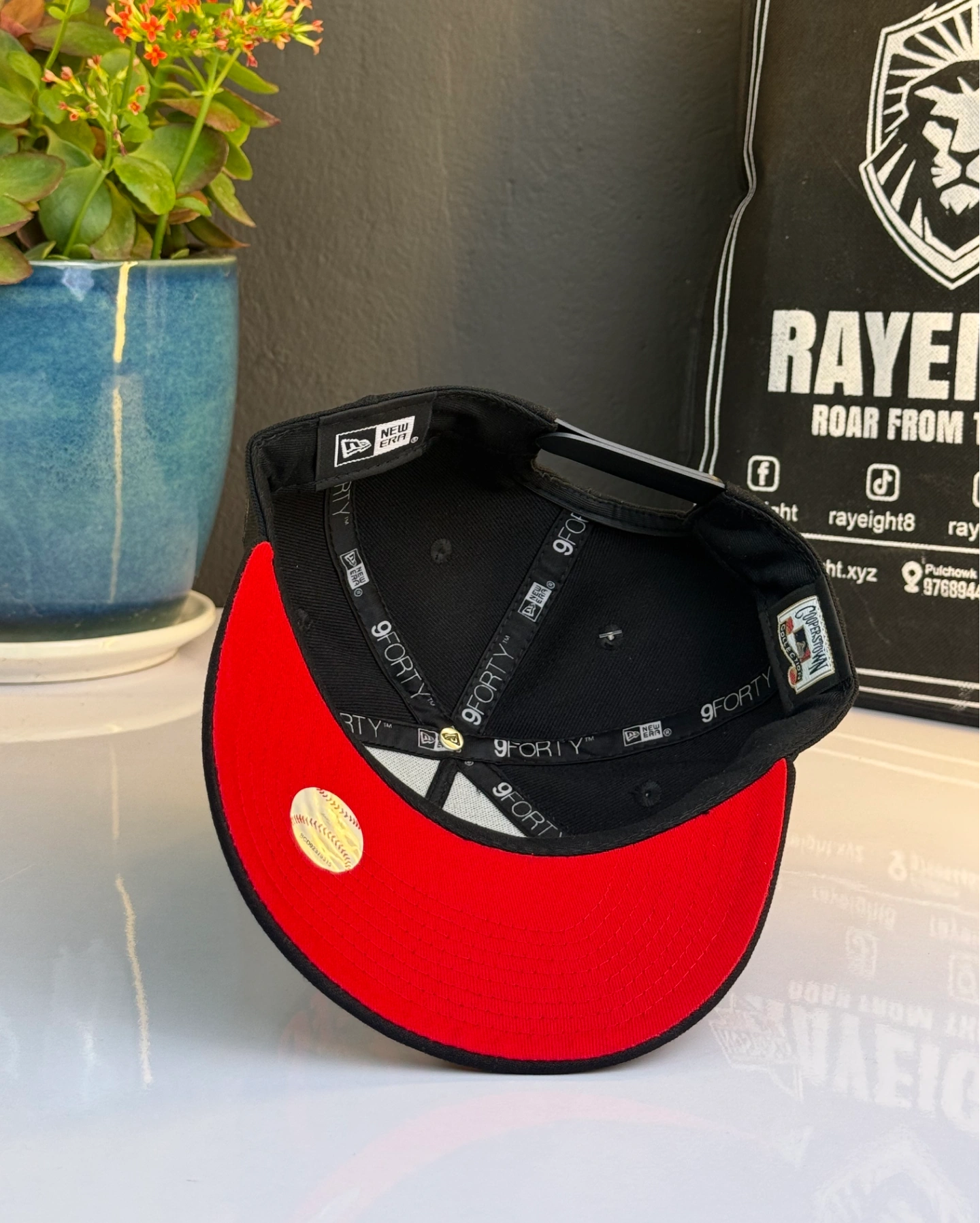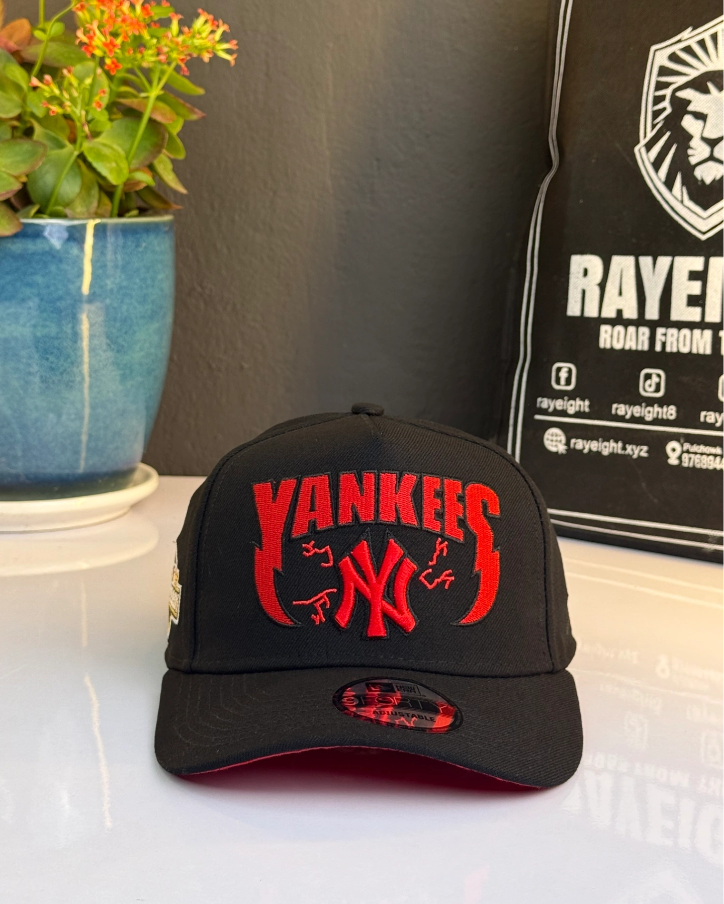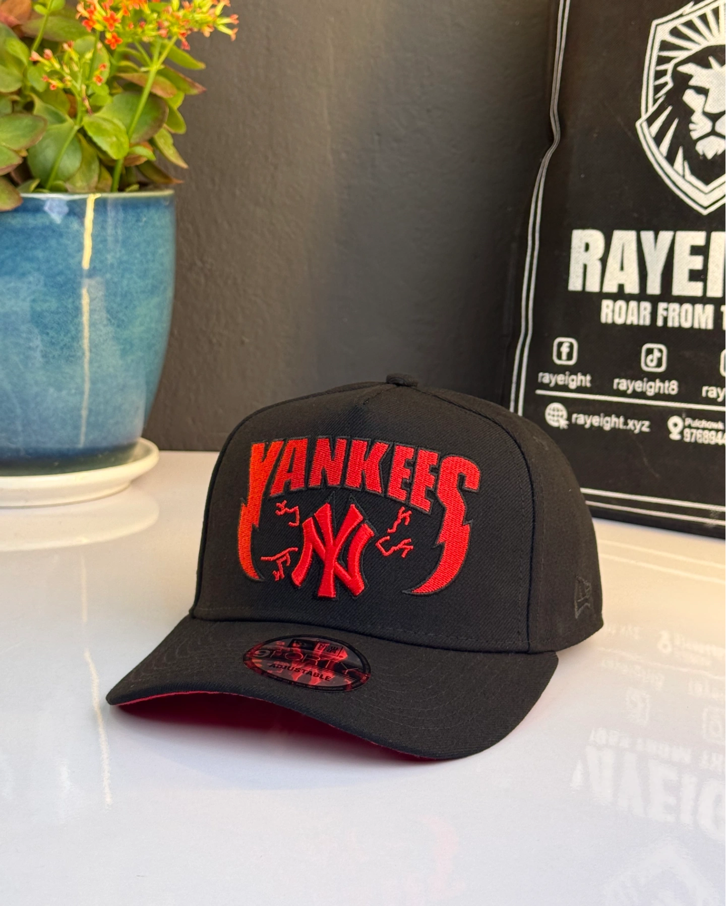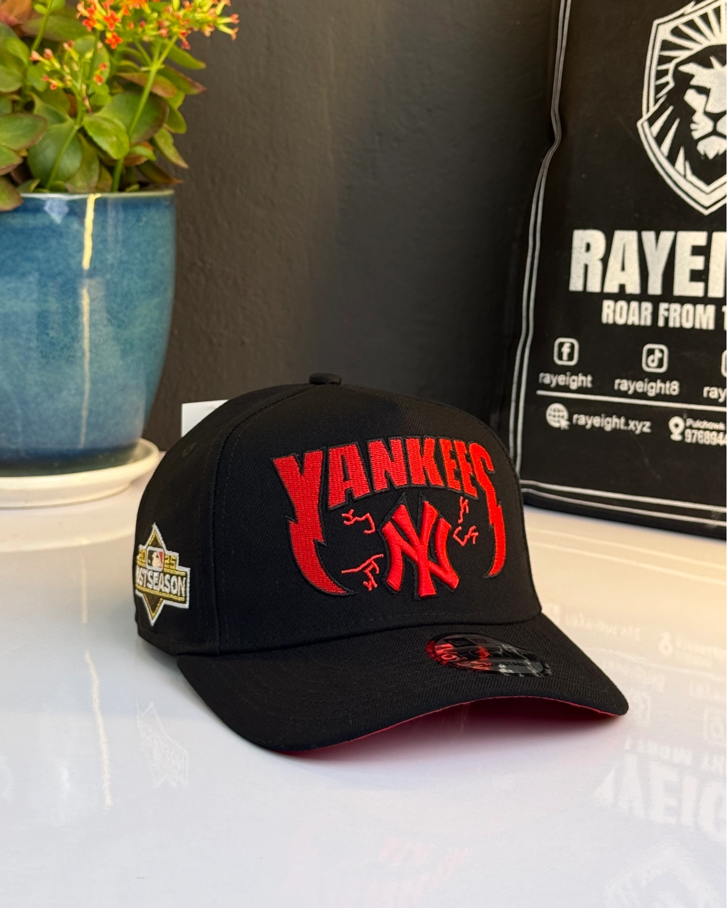 New York Yankees 9FORTY A-Frame snapback cap in a black and scarlet red colorway.