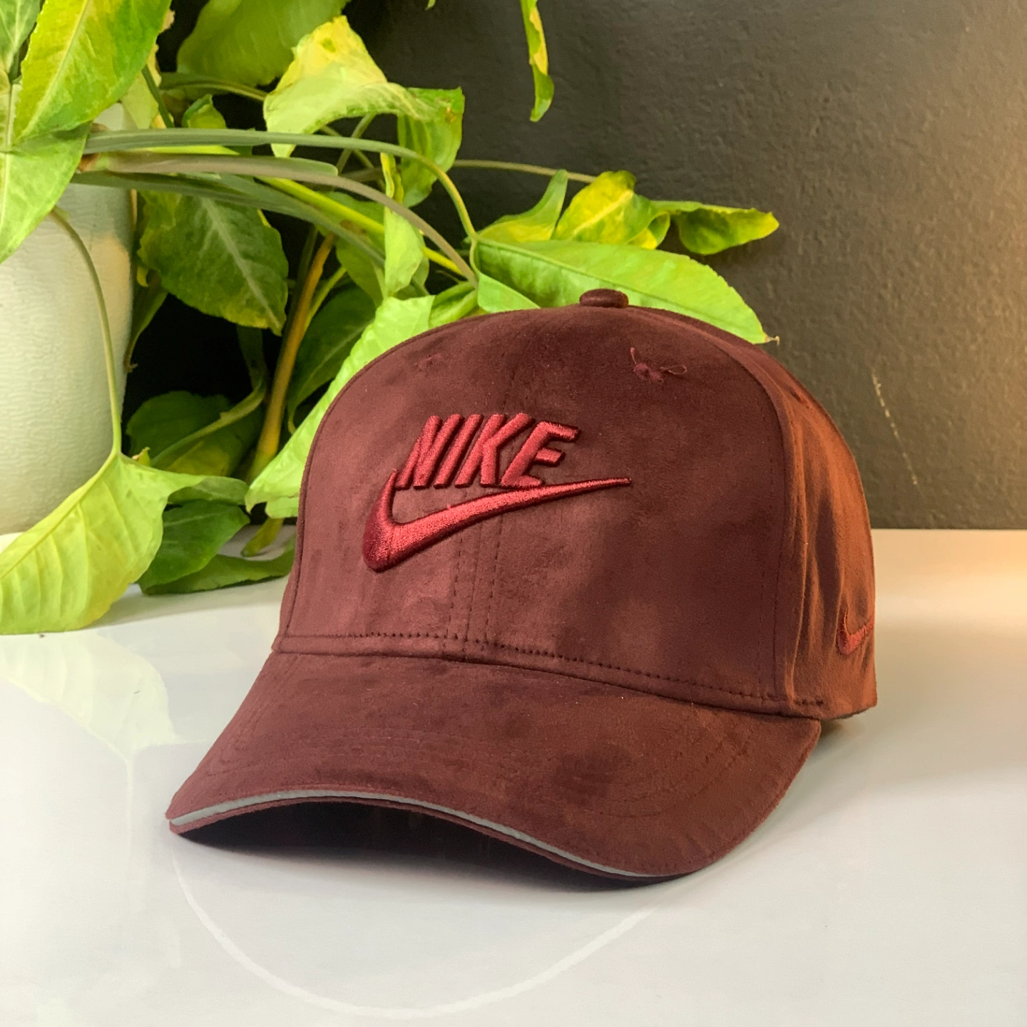 Nike Big Logo 90's hat in a maroon or burgundy color.