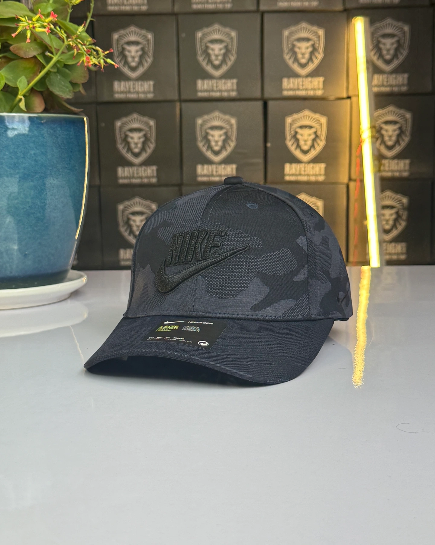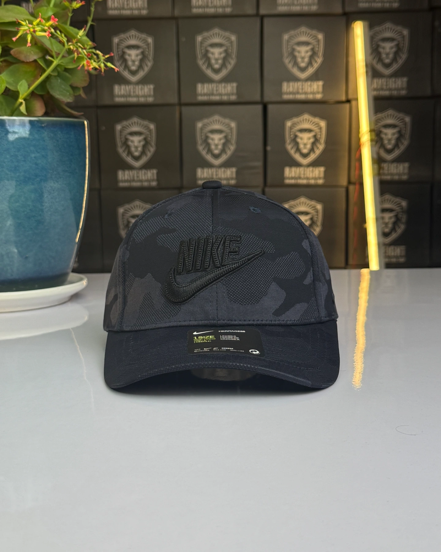 Nike camouflage baseball cap featuring an embroidered swoosh logo.