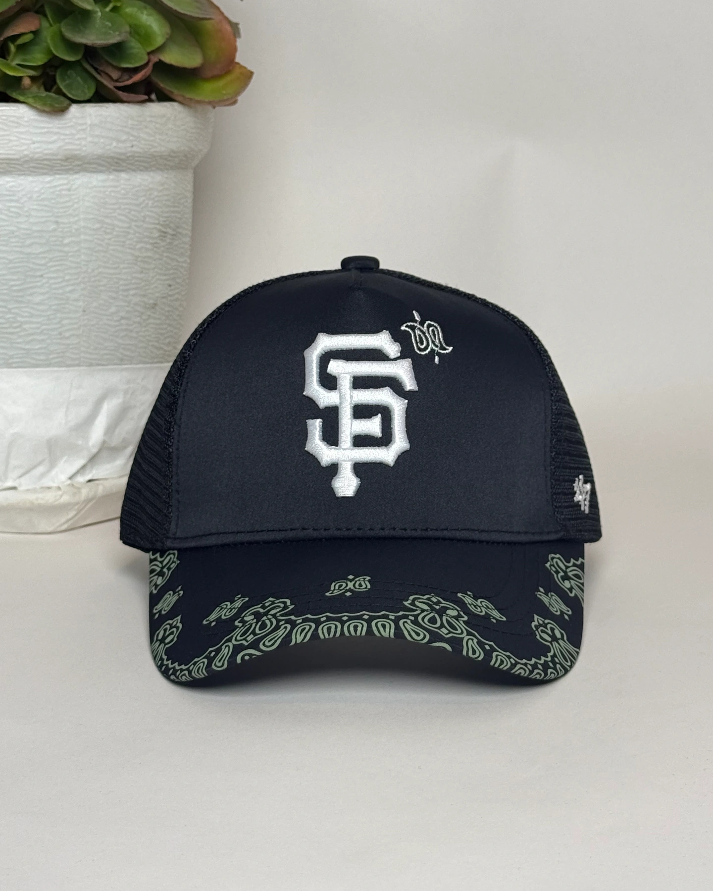San Francisco Giants adjustable hat is a New Era 9FORTY A-Frame Trucker cap