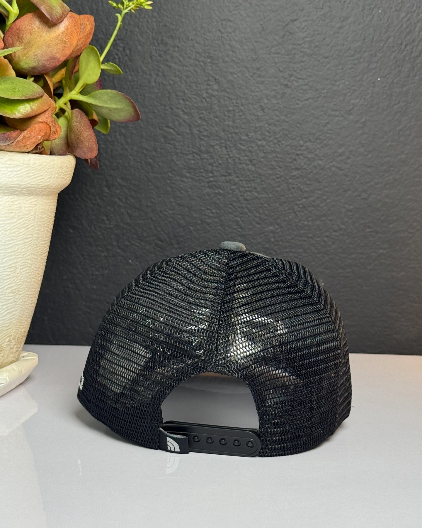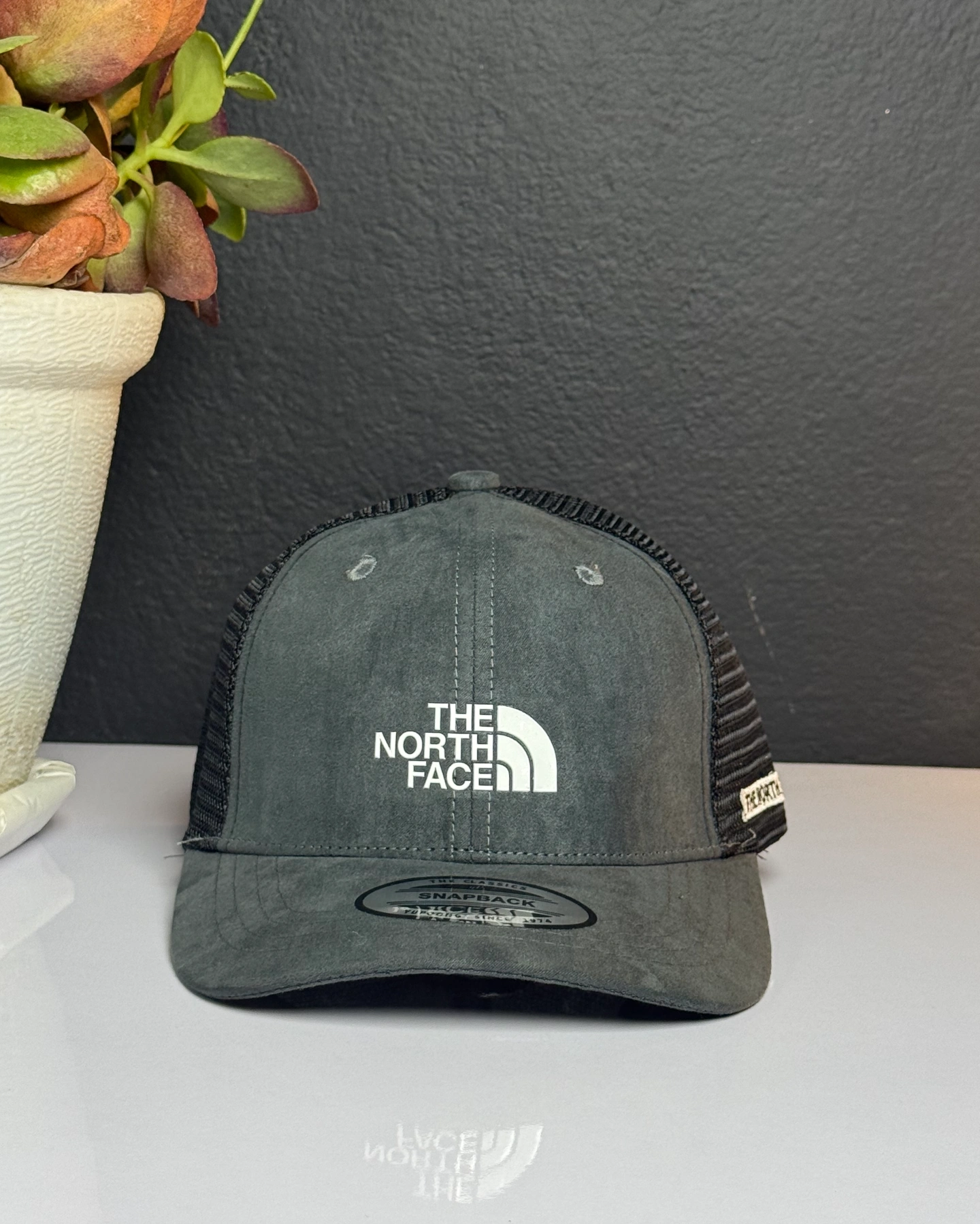 The North Face Deep Fit Mudder Trucker cap in a gray and black colorway.